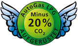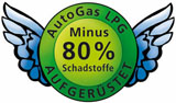 Die Abgaswerte eines G-AutoGas betriebenen Fahrzeuges liegen 80% unter denen eines benzinbetriebenen!